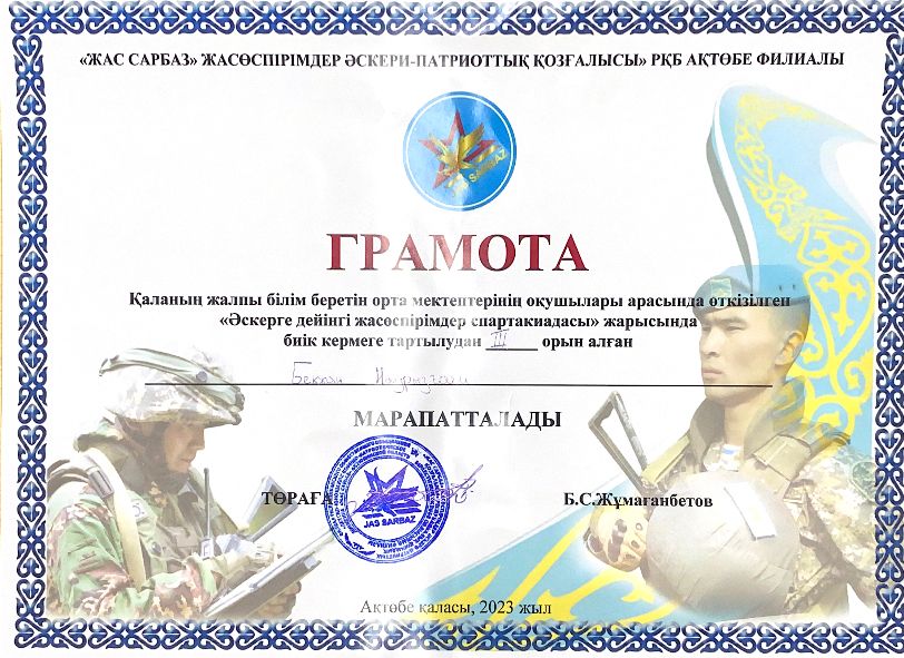 10-сынып оқушылары әскерге дейінгі жасөспірімдер арасында әскери-қолданбалы спорт түрі бойынша қалалық Микротоп арасында спартакиада